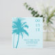 Announce your engagement in style with these beautiful wedding save the date announcements, featuring a vector illustration of two palm trees in trendy color combinations perfect for your destination and tropical summer weddings.