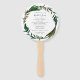 Our tropical chic wedding program fan features your ceremony details in elegant lettering, encircled by a wreath of watercolor palm leaves and green foliage. Reverse side lists the members of your wedding party with easily editable text fields. Coordinates with our Palm Wreath wedding invitation collection for summer, outdoor or beach weddings. Use the template fields to add your ceremony and bridal party information, and then click "Customize It" to reposition elements if needed. Need help? Contact me via the "Ask this Designer" link on this page.