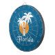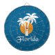 Palms and orange sun dartboard with darts