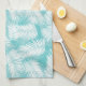 This kitchen towel is shown in a Aqua color with a White tropical palms print.