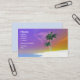 Colorful tropical business card with my digital artwork of palm trees on a white beach.