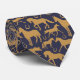 Stylish navy blue tie with a tan palomino horses and horseshoes pattern