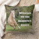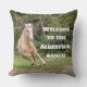 Leave one or several of these comfy pillows on your guest bed, guest sofa or recliner to welcome visitors to your home. A Palomino horse graces the front of the pillow and the welcome text can be customized to suit your preferences. The back is a neutral brown but can be changed as well.