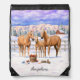 Palomino Quarter Horses In Winter Snow Drawstring Bag