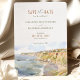 The elegant typography in earthy hues complements the watercolor scene, setting the tone for a romantic, sun-soaked wedding day. Ideal for couples planning a wedding in Malibu or anywhere along the California coast, this card offers a blend of natural beauty and artistic style.
