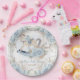 Personalize these whimsical matching paper plates easily and quickly, simply press the customize it button to further re-arrange and format the style and placement of the text. Featuring a whimsical vintage wooden rocking horse, pretty blue roses and earthy tone pampas grass. Great for baby shower, new baby, birthday party and more occasions! Matching items available in store! (c) The Happy Cat Studio
