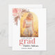 White background decorated with pampas grass and blush pink florals. Personalize and add your own photo of the graduate. Add year and school name. With the word: Grad written with large letters.