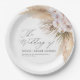 Pampas grass dried botanical script boho wedding party favor paper plates.