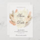 This soft, earth-toned save-the-date is a balanced mix of rustic charm and delicate elegance, featuring lovely watercolor dried flowers and pampas grass in shades of warm beige and dusty rose.