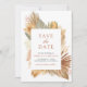 Amaze your guests with this elegant save the date card featuring beautiful rustic palm leaves and pampas grass with modern typography. Simply add your event details on this easy-to-use template to make it a one-of-a-kind save the date card.