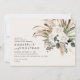 Modern bohemian tropical botanical stylish wedding save the date card invitation card. Beautiful handprinted floral and botanical watercolors and script text. Modern on trend design.