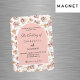 An arch frame on a pattern of pampas grass and pink flowers and a golden cross. Personalize and add your names and details.