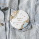Elegant boho modern floral pampas grass gender reveal He or She baby shower party button featuring watercolor illustration of pampas grass botanical with pink rose and dusty blue flowers. You can customize this beautiful button with your own text.