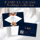 Pampas Grass Navy Blue Autumn Fall QR Code RSVP Note Card