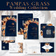 Stunning, modern wedding enclosure card featuring pampas grass boho elements in rust terracotta, rustic hues with navy blue background. Add the URL of your wedding website on the reverse of the card and the QR code will be updated, or delete if not required. Customize with your own details by using the text templates.