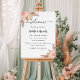 A modern, elegant wedding program, timeline. A white background decorated with pampas grass and blush pink florals, roses. Personalize and add your names and wedding details. Black colored letters. If you have more text it's possible to reduce the line space.