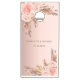 A rose gold gradient background. Decorated with rose gold and pink florals, roses and pampas grass. Personalize and add your names and a date.