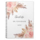 A white background. Decorated with rose gold, pink florals, pampas grass. Personalize and add a name, title and year. The name is written with a modern hand lettered style script.