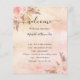 A modern, elegant wedding program, timeline and table number. Blush, rose gold gradient background decorated with pampas grass and blush pink florals, roses. Personalize and add your names and wedding details. Black colored letters. If you have more text it's possible to reduce the line space.