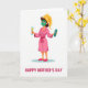 Designed with a full-figure illustration on a bright white background, this card shows a woman enjoying a cozy self-care moment with a gentle, affectionate air ❤️. She wears a soft pink bathrobe tied with a deeper pink sash and matching slippers, giving her stance an easy, relaxed look. A sunny yellow towel is wrapped into a turban around her dark hair, adding a warm pop of color near her face. Her cheeks, nose, and forehead are covered in a rich green face mask, which contrasts with her wide red smile and bright eyes, as if she’s sharing a private, friendly joke with the viewer. In one hand she lifts a slim flute glass filled with sparkling golden liquid, while the other holds a sleek teal rectangular device marked with a small star-like symbol. A muted blue-green oval shadow sits beneath her feet to anchor the figure, and below the illustration the words “HAPPY MOTHER’S DAY” appear in large fuchsia capital letters 🌼. The text is centered under the character, with the fuchsia lettering standing out sharply against the white space.