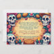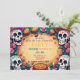 Say ¡hola! to *Pan de Party*, the Día de los Muertos invite that’s baked with tradition and frosted in fiesta. With sugar skulls, candles, and pan de muerto front and center, this card serves up celebration with a side of sweet mischief. The swirling colors and playful layout set the mood for a night of music, memory, and marigold magic. The front dishes out all the party details—date, time, location, and costume rules—while the back is yours to customize with RSVP info, cheeky notes, or a warning about ghostly snack thieves. BYOD: Bring Your Own Dulces.