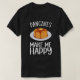 My 11 yo wore adult XL (5’7” 165#). The 8yo is small framed. She wore adult small and tied it in the back. Grandma wore adult large with long sleeve shirt underneath. Tall girl adult medium. Dark haired male adult large. Good quality dark Heather gray, Gildan brand shirt. -it was next up from basic choice and cost about $20 per shirt. Not too thick or thin. Washed and dried well, no major shrinkage. Not see-through. Can wear a bra under it fine. Screen print is just as shown and well done, front and back.