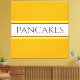 This fun design features text inside a wide white center stripe highlighted with black and light yellow pinstripes against bright wide golden yellow orange background stripes. The PANCAKES text can be personalized.