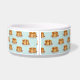 A pattern of delicious pancake stacks on plates, covered in maple syrup and surrounded in polkadots. The background colour is a nice minty green! This fun and tasty pancake pattern is a great gift idea for foodies and pancake lovers alike! Customize this food bowl with the name of your pet on the front.
