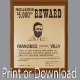 Pancho Villa Vintage Wanted Poster Reward Artwork Poster in a Faux Wood Frame. Change the image if you like.