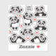 Add pack of 8 different style of cute pandas to your sticker collection, with little red hearts in between.