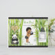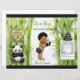 Panda & bamboo theme in black, white & green color scheme. Baby boy in bamboo patterned diaper with panda slippers and bow tie, holding a stuffed panda bear. Perfect for baby shower or birthday.