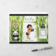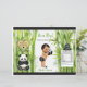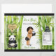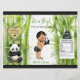 Panda & bamboo theme in black, white & green color scheme. Baby boy in bamboo patterned diaper with panda slippers and bow tie, holding a stuffed panda bear. Perfect for baby shower or birthday.