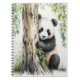 Cute panda bear by a tree with bamboo leaves in watercolor artwork.