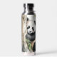 Cute panda bear by a tree with bamboo leaves in watercolor artwork.