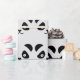 design of a tender face of panda bear with blue eyes and nose in the shape of a heart, juvenile and funny bear, ideal for animal lovers