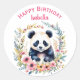Panda Bear in Flowers Girl's Birthday Personalized Classic Round Sticker