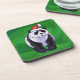 Panda Bear in Santa Hat on Green Beverage Coaster
