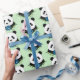 Panda Bear Lotus Flower Blue Wrapping Paper