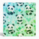 Cute little pandas on green background