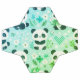 Cute little pandas on green background