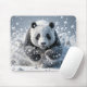 A panda bear playfully charges through a snowy landscape, creating a flurry of snow around it.
