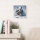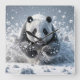 A panda bear playfully charges through a snowy landscape, creating a flurry of snow around it.