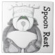 Trivet spoon rest with picture of panda bear wearing a chef's hat. Originally drawn in pencil on paper. Cute gift for the chef or cook and even mom!