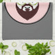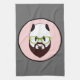 A black and white, panda bear wearing green glasses. The panda has a brown beard and mustache. The background is a pink circle. A fun, funny, humorous, hipster design.