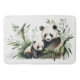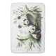 Watercolor cute panda bear in bamboo leaves with a cub on a white background.