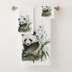 Watercolor cute panda bear in bamboo leaves with a cub on a white background.