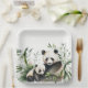 Watercolor cute panda bear in bamboo leaves with a cub on a white background.