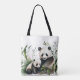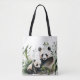 Watercolor cute panda bear in bamboo leaves with a cub on a white background.