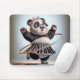 A joyful panda wearing a bow and flowers twirls a colorful hula hoop while wearing a small pleated skirt and saddle shoes.
