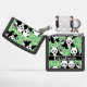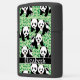 Cute black and white panda bear cubs as a pattern with bamboos and a green background. Personalize this Panda bear design with any name.